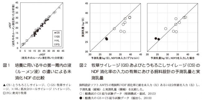 (2)乾乳牛または泌乳牛のルーメン液を用いて測定した値に大きな違いはなかった(図1)。分析値は、泌乳牛を含む様々なステージの牛群の飼料設計に利用可能と考えられた。
