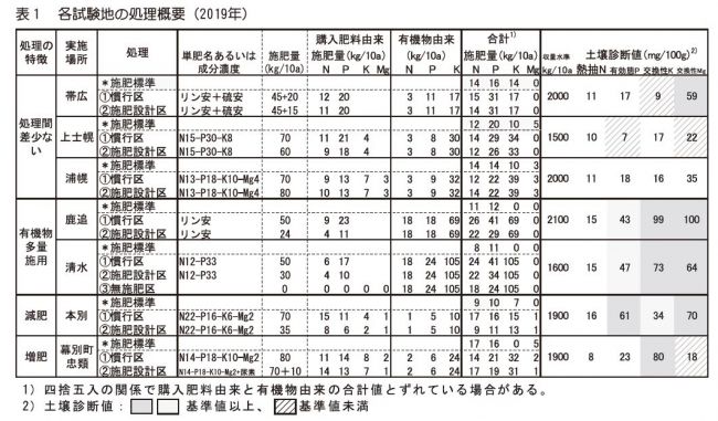 2)土壌分析値は通常3~4年程度継続利用することが可能である。