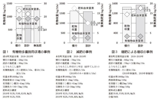 (3)施肥設計することで過剰な施肥と計算された場合、肥料を削減しても収量が確保されることを確認した(図2)。