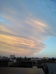 8月の初めの夕方、南の空は青に珍しい赤色の雲!?
