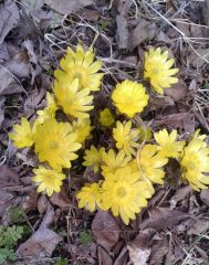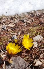 福を呼ぶフクジュソウ 雪解けで見つけました