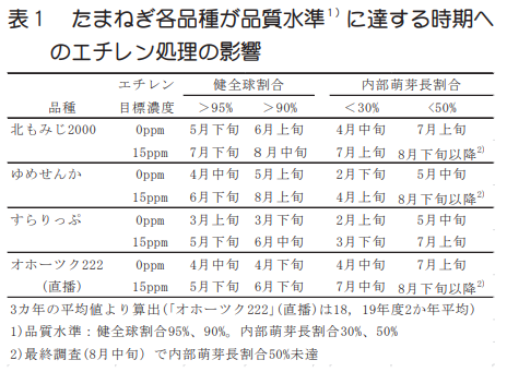 エチレン処理がたまねぎの貯蔵性に与える影響を明らかにする 。
