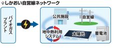 バイオガスプラントの取り組みとは別に、町は20年度までに鹿追市街に「自営線ネットワーク」を構築した。役場や町国保病院、鹿追小学校など9カ所の公共施設に電力を供給できる自前の電線「自営線」を巡らせ、太陽光による電力を供給。ネットワークは蓄電池と地中熱利用システムを備え、電力を無駄なく使い切るシステムとなっている。
