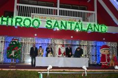 関係者による点灯式。中央はサンタクロースに扮した村瀬町長(22日午後5時半)