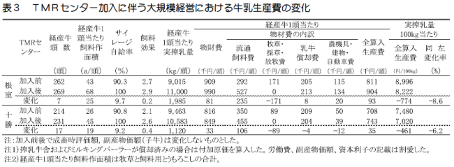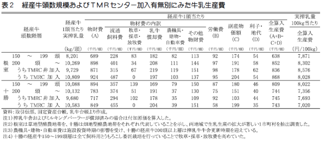 飼養頭数規模拡大が牛乳生産費に及ぼす影響と TMRセンター加入によるコスト低減効果