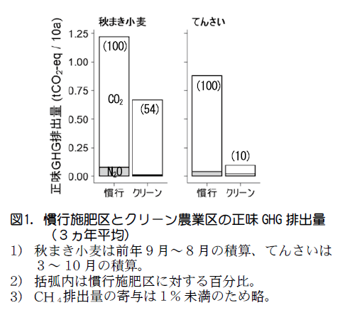1)クリーン農業による畑地からのGHG(N2O、CO2、CH4)の排出抑制効果の検証