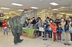 ティラノサウルスの登場に歓声が湧く店内(3日、イトーヨーカドー帯広店)