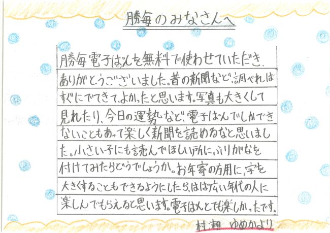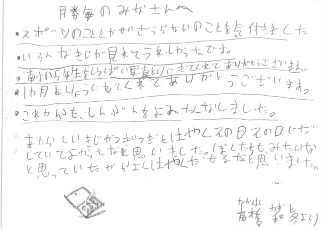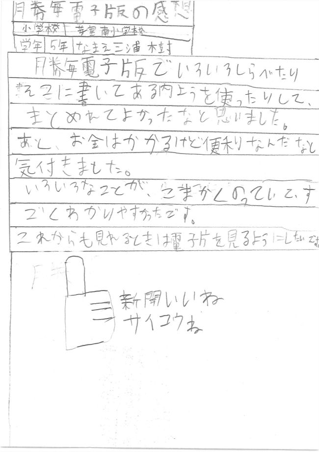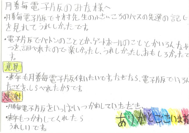 勝毎電子版でスクラップづくり 芽室南小で「十勝の伝統」探し~先生が記者 2023/12/19 14:15 スクラップづくりを体験した芽室南小の皆さんの感想文です。 « 前へ12カテゴリ学校・教育タグMottoかちまいかちまいこどもしんぶん芽室南小学校