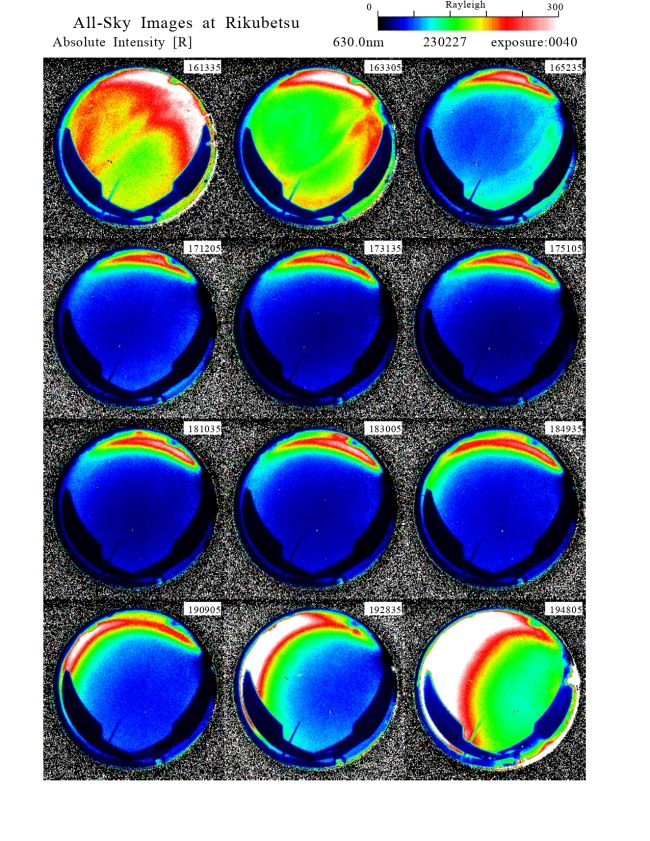 【陸別】陸別町内で2月28日午前1時半ごろから同4時半ごろにかけて、低緯度オーロラが出現した。りくべつ宇宙地球科学館・銀河の森天文台の津田浩之館長と中島克仁主査が写真に収めたほか、同天文台に設置している名古屋大学の機器でも撮影。解析した同大宇宙地球環境研究所の塩川和夫教授は、「波長の関係で街明かりではなく、弱い低緯度オーロラとはっきり分かった。いつも見るような赤色よりも緑色の方が強い」と結論付けた。