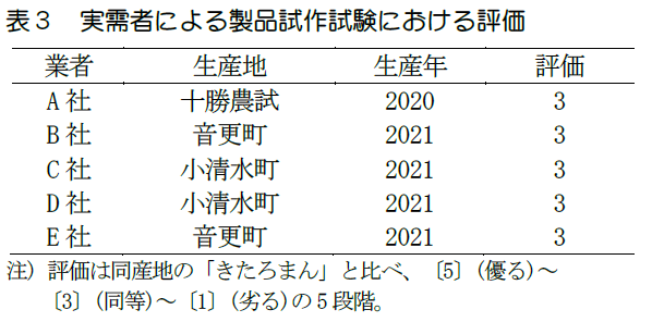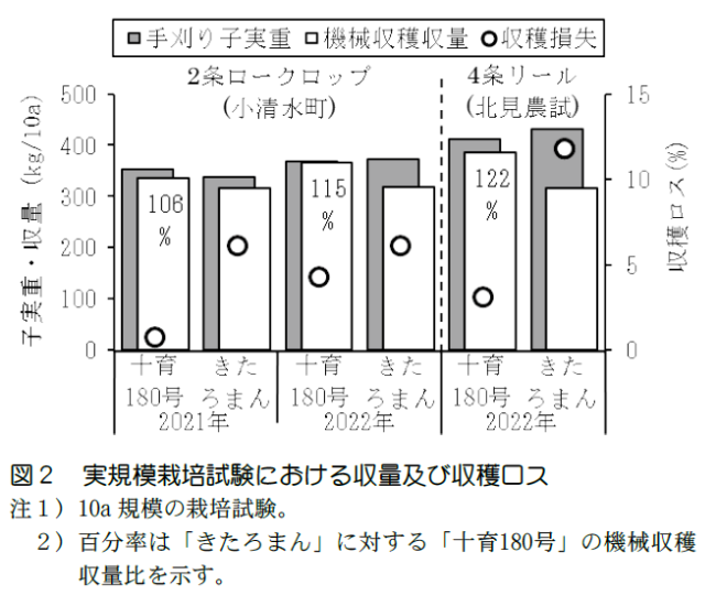コンバインによるダイレクト収穫を実施する地域の「きたろまん」に置き換えて普及する。