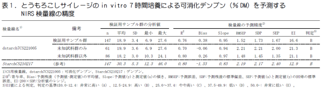 2)CSの in vitro7時間培養による可消化デンプン含量を予測するNIRS検量線を開発する