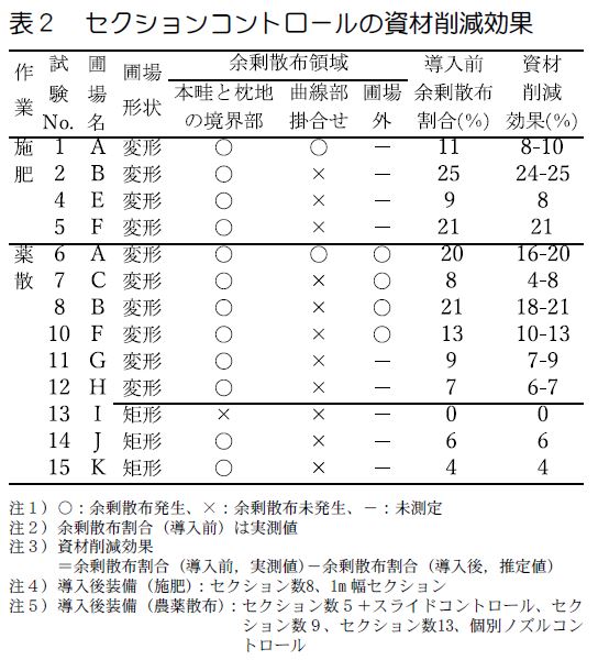 セクションコントロール搭載のブロードキャスタとブームスプレーヤの資材削減効果を明らかにする。