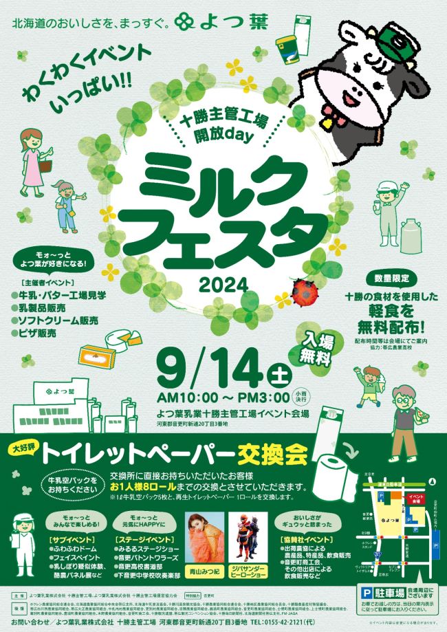 場所 :よつ葉乳業十勝主管工場イベント会場(音更町新通20丁目3番地)