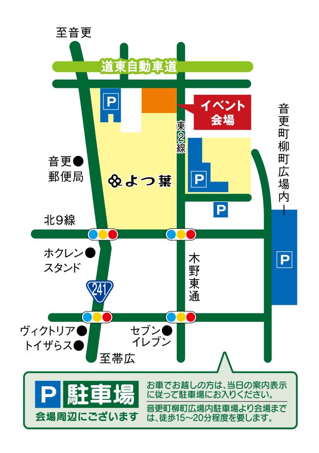 ※音更町柳町広場内駐車場から会場までは、徒歩で15~20分ほどかかります