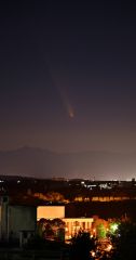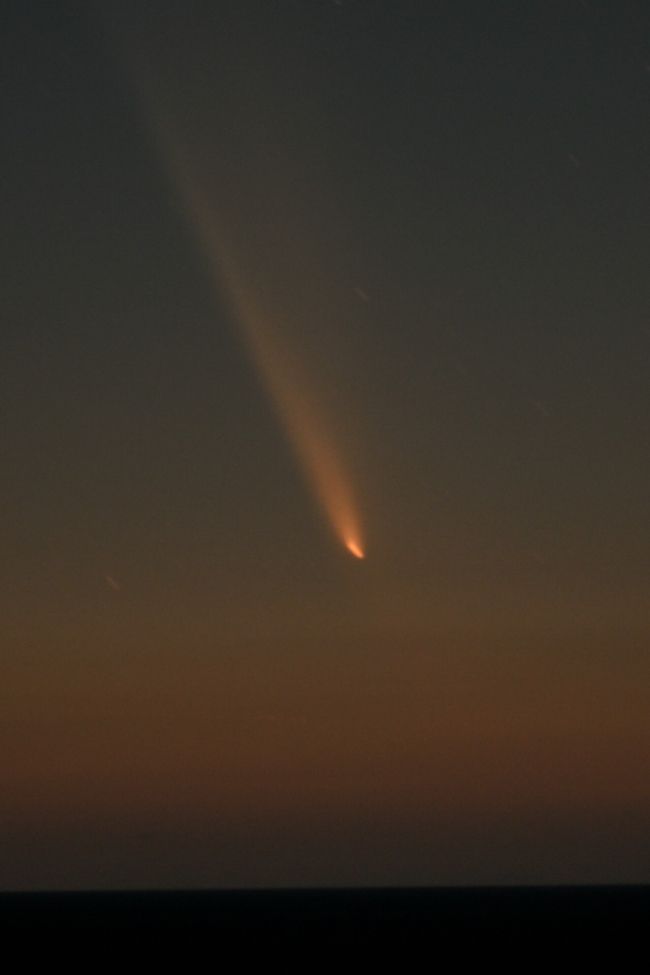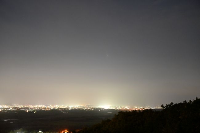 池田町内のワイン城のある丘では13日、日没の約1時間後、西の空に長い尾を持った彗星がうっすらと肉眼でも確認できた。
