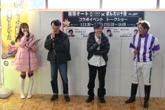 午後1時半開始の回では、3人に阿部武臣騎手(52)も加わり、ばんえい競馬や飯塚オートレースなどについて約20分間のトークショーを実施。篠原選手が「ばんえいはまだ見たことがないが、今日は前売りで4レース目まで買いました」と大声で宣言して会場を盛り上げた。