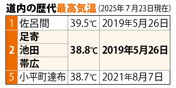 帯広では23日午後2時の気温が35・3度を観測した。同時点で足寄が36・7度。帯広測候所によると、きょうの予想最高気温は、帯広で39度まで気温が上昇する見込み。