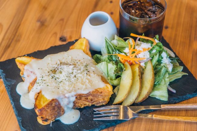 サラダやポテト、ドリンクがセットになった〈ライトランチ〉1,300円~。メインのフレンチトーストは追加料金で他のメニューに変更も可能。セットメニューは今後、〈ボリュームランチ〉や〈スーププレート〉などを順次追加していく予定
