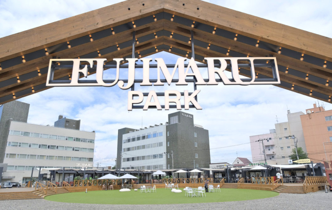 藤丸が閉店して約2年―。”新藤丸“が復活するまでの「つなぎ」として、今年の7月に屋外商業ゾーン・藤丸パークが誕生した。同施設は、百貨店再生に取り組む藤丸株式会社が開設。街中のにぎわいに一役買っている。