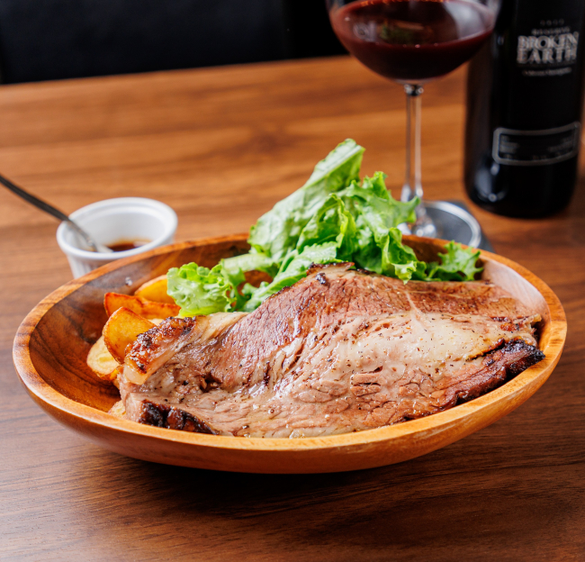新メニューの〈テキサスブリスケット〉1,500円は、十勝産交雑種の前バラ肉を低温でじっくりスモークしながら火入れした料理。ホロホロと口の中でとろけるような食感と自家製ソースが肉のうま味を引き立てる。フライドポテトには池田産のキタアカリを使用。オープンキッチンなので調理の音や香りもたまらない。
