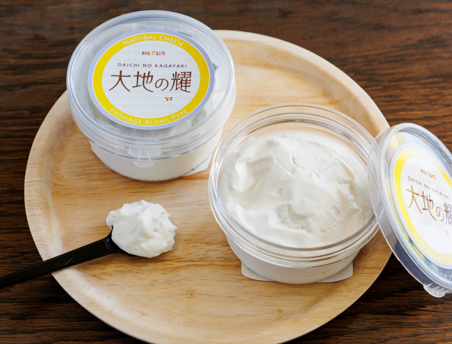 昨年ワールドチーズアワードで銀賞に輝いた〈大地の耀〉は、生乳と乳酸菌のみで作るシンプルなチーズ。〈大地のほっぺ〉と同じ乳酸菌を使用し、生クリームのような濃厚な味わいが特徴的だ。製造の過程で砂糖や塩を使わないため、好みのジャムを載せてデザートに、バゲットと合わせて食事の一品にすることもできる。「ビーフシチューの生クリーム、ポテトサラダのマヨネーズ代わりにも使えます。ニーズのミルクジャムとの相性も抜群です」と営業部長の松浦知生さん。