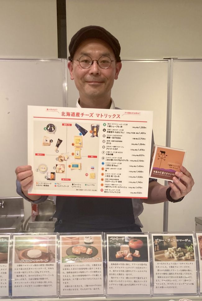 チーズ好きが高じ、異業種からチーズ業界へ飛び込んだ市山展年さん。自身の会社を立ち上げ、十勝野フロマージュのチーズ製造・販売に加え、道内のチーズを集めて提案するバイヤーとしての役割も担う。