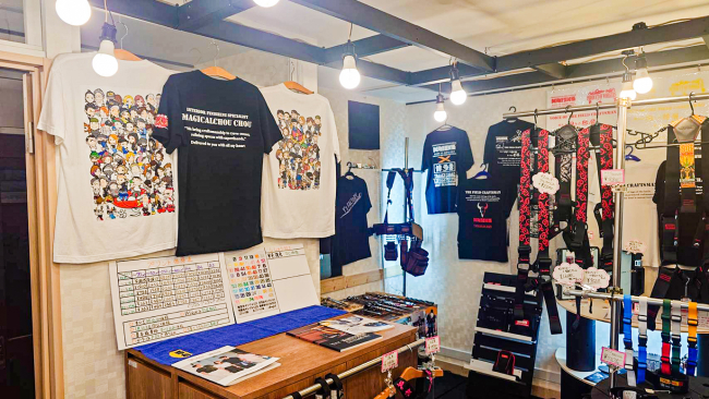 カスタム加工工具の取り扱いや、大工手作りの〈レジンネックレス〉3,300円~(オーダーメイド可)、オリジナルのTシャツプリント(Tシャツ別料金)などを扱っています。詳しくは問い合わせください。