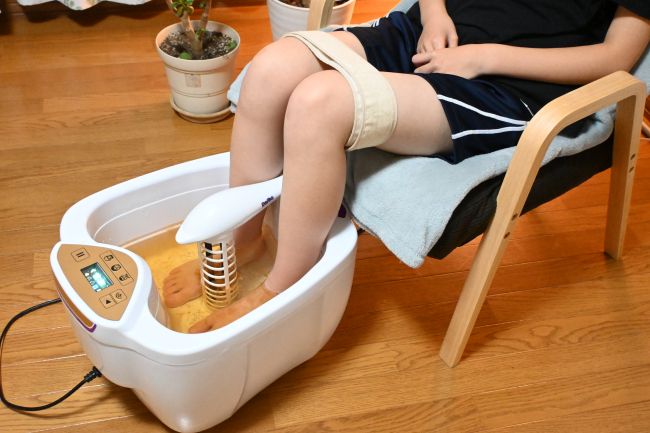 足湯の色やにおいの変化から、心身の疲れのサインを読み取る足湯型マシーン「ゴッドクリーナー」に加え、理学療法機器「THzTera P-90」を新たに導入しました。頑張る日々の中で、自分をねぎらう習慣を。