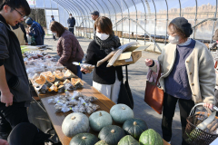 まとめ買いする来場者も多く、かごに多くの商品を詰め込んでいた。市内の小関志津子さん(76)は「ダイコンや豆などをひと通り購入した。今は物価高なので、安く買えてよかった」と笑顔。津田所長は「天気にも恵まれ、思ったより多くの人が来てくれてよかった」と話した。(菊地青葉)