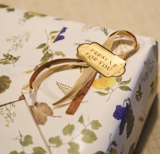 開ける前から心躍る、鈴木商店のギフト。唯一無二の包装紙が、その期待値を上げているのは間違いない。