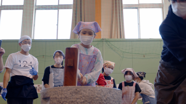 幕別途別小で最後の「餅つき集会」