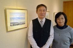 20代半ばに透明水彩を始めた雄作さんは池田に来てから絵の色調が変わり、透明感が一層際立つ作品が増えたという。知子さんも雄作さんに透明水彩を習い、「色がきれい。水のにじみ方も面白い」とすっかりとりこに。