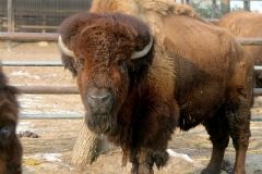 「帯広暮らし」が長い動物たちは、徐々に寒さに順応している。冬場のアメリカバイソンたちは、あごから胸元にかけて体毛が毛布のように覆われ迫力十分。アミメキリンのムサシ(雄)とリボン(雌)、インドゾウのナナ(雌)も、日中は果敢に屋外に出ることが多く、雪景色をバックにたたずむ「冬の動物園」ならではの光景も見られる。