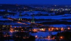 公園を上がってすぐの展望台からは、眼下を流れる十勝川と温泉街、雄大な十勝平野と日高山脈を一望できる。夕日のスポットとしても有名だが、夜景や星空も美しい。