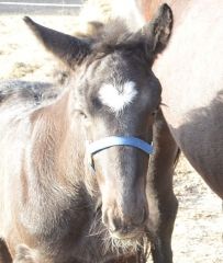 ばん馬の子馬の額にハート 足寄
