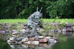竜がいるのは札内川ダム下流の公園内。札内川の守り神とされる「サツナイ竜」のモニュメントだ。1998年、同ダムの完成に合わせて設置された。