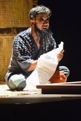 迫真の演技を見せた村山和十郎役の中村吉克さん。「ミスもあったが、みんなが一つになって取り組み、観客の皆さんにも思いが伝わったはず」。脚色・演出助手の樋口かおりさんは「キャストの皆さんも熱が入り、楽しんでいた」と満足そう