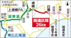 事業化されている本別IC-釧路間は、延長65キロのうち本別IC-浦幌ICの8キロが2009年度に開通。白糠IC-阿寒IC間の14キロは来年度中に開通予定。阿寒IC以東の17キロ開通時期は未定。(関坂典生)