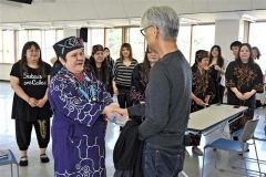坂本さんは同保存会の歌と踊りを、手拍子をして時折、目をつむって聴いていた。合間には酒井会長の隣に座り、かつてアイヌ民族の間でどのような場面で踊りが行われていたのか、熱心に質問した。1時間余りの交流を終え、酒井会長に感想を尋ねると、「うれしいの一言。(公演中止のショックから)100%復帰した」と満面の笑みを見せた。