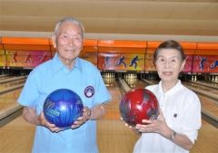 • 全国長寿ボウラー男性部門横綱の稲辺勝男さんと夫婦部門横綱の好美さん