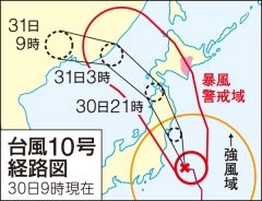台風10号は30日、暴風域を伴い東北地方に上陸する恐れがある。