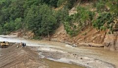 救出作業は、補修工事で川の流れを変えるタイミングを利用。ブルドーザー2台が土砂を盛り上げ、川の瀬が変わるのを白木さんやJA関係者11人が川辺でじっと待った。約3時間後、川の水が引いたところで牛に近寄り、救出した。