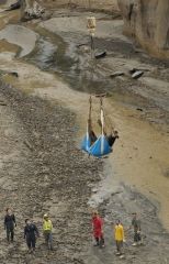 暴れて落ちるのを避けるため、最後は足を縛り逆さ吊りして、約20メートル上の橋まで引き上げられた