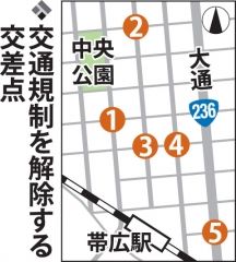 帯広市中心部の交通規制解除へ 交差点5カ所