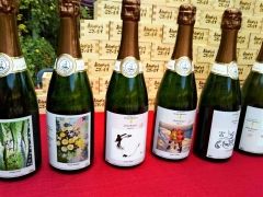 書道作品「飛龍」がラベルとなったシャンパン(中央)