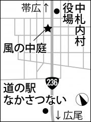 施設名は「風の中庭」で、「新しい人の流れを作りたい」との思いを込めた。敷地面積は約1500平方メートルで、建物は木造平屋、床面積約280平方メートル。建物の後部に20台分の駐車場を作り、前側には芝や木などを植え景観にも配慮する。