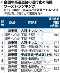2016年度の国交省の調査によると、占冠-トマム間(札幌方向)の事故による通行止めは合計50時間で、全国の高速道路では「ワーストワン」。事故原因の通行止めが多い上位30区間に、道東道の9区間がランクインした。