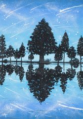 作品「自然の美しさ」で湖畔に映る森と夜空を描いた酒井さんは「賞をもらえてびっくり。絵のような好きな自然がずっと残ってほしい」と話した。森さんは「蒸気と歯車」で、地熱を動力に歯車を回す場面を描き、電力消費について考えた。「茶色系を使って産業革命時代の脂っこい雰囲気を出したかった」と話した。(藤島諒司)
