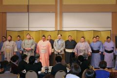 場所が開かれた国技館に近い第一ホテル両国で開かれたパーティーには、関係者160人ほどが参加。