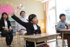 新1年生の井村快君は「跳び箱を頑張りたい」、秋山心優(みひろ)さんは「社会科の勉強が楽しみ」とこれから始まる小学校での生活を楽しみにしていた。